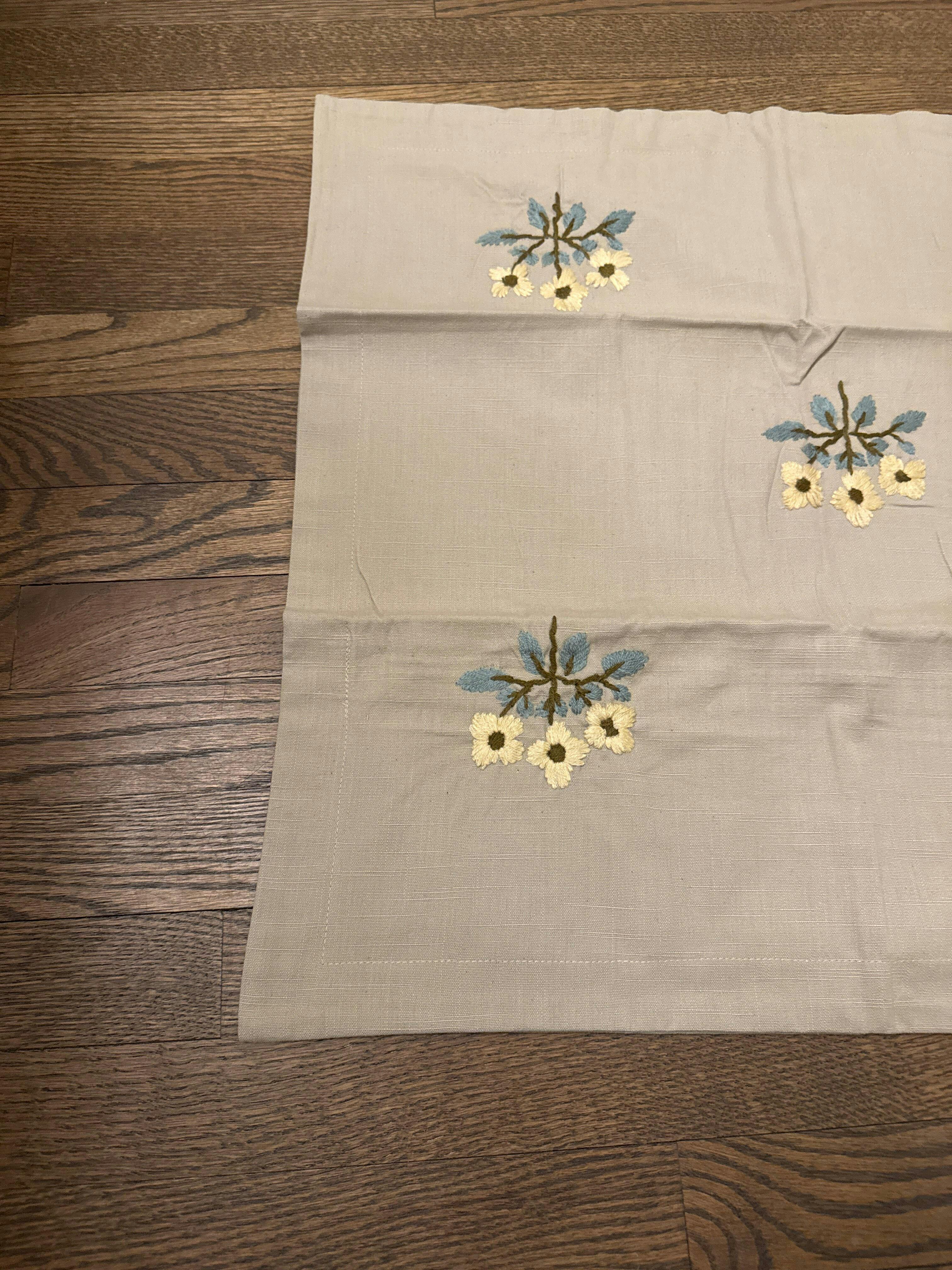 This beautiful, classic pattern features five embroidered flowers on our natural/beige colored pillow. Our Florence pillow features wool thread embroidery and each flower has been hand sewn to make this pillow truly one-of-a-kind.
